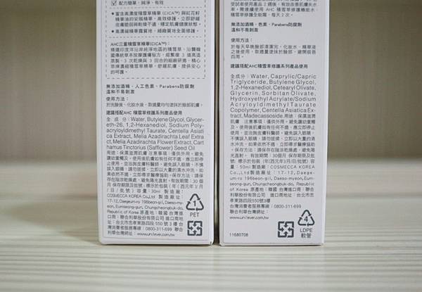 AHC積雪草修護系列還有一個共同亮點:極簡成分添加